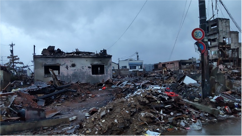 2024年1月1日、平穏なお正月を突然の大地震が襲いました。最大震度7を観測し、多くの犠牲者を出した能登半島地震です。私は救援活動をいち早く始めたNGOに参加して、発災から約2週間後に輪島市内の避難所での医療活動に従事しました。すでに超急性期は過ぎ、災害対策としては亜急性期に入ったところでしたが、写真でわかるように輪島市内にはたくさんの地震の爪痕が残っていました(写真)。 今回は、大規模自然災害の被災地で発生する感染症(Disaster-associated Infectious Diseases)を紹介したいと思います。