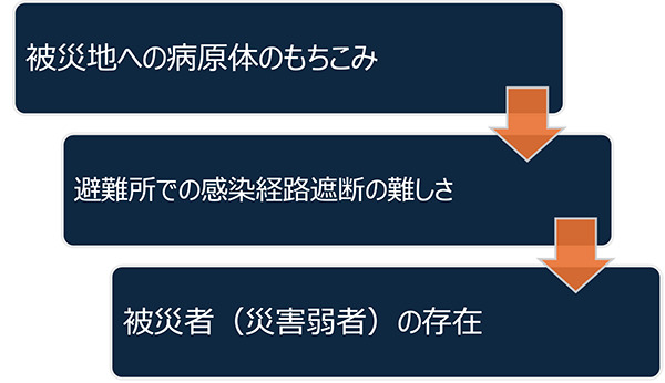 図1. 感染症発生の原則に基づいた被災地での感染症発生への流れ